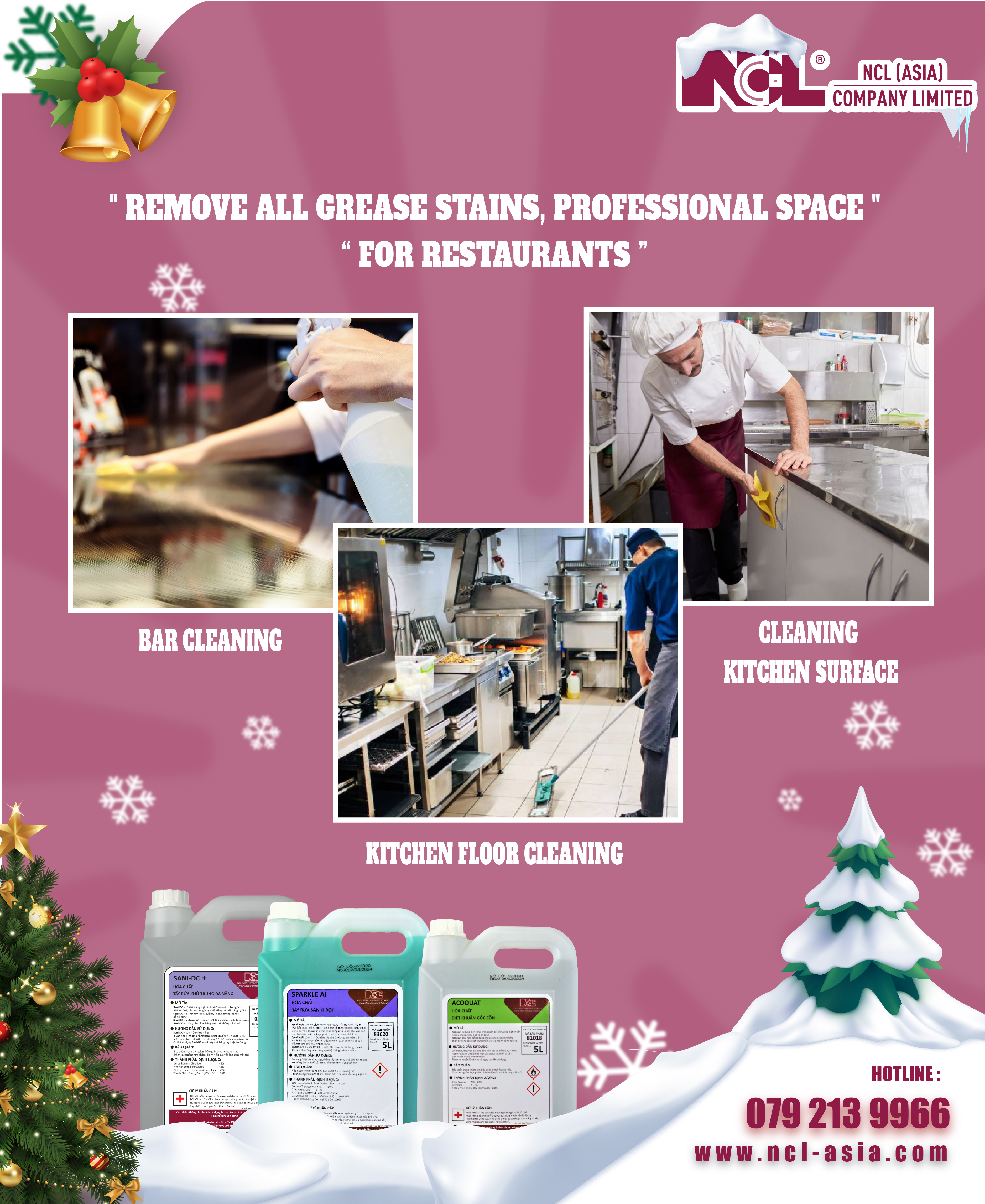 The festive season has arrived! This is the time when busy restaurants prepare to welcome guests in the bustling Christmas atmosphere. Don't let stains or mess interrupt your joy. Let NCL Asia accompany you, providing the most professional and effective cleaning solution!