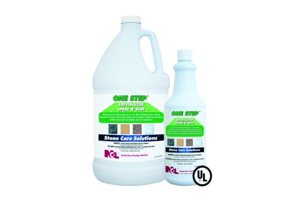One Step™ đã được phát triển như là một hệ thống phục hồi đơn giản để sử dụng cho các đá hoa, terrazzo và đá vôi. Một trong những quy trình với STEP™ CRYSTALLIZER, phun N' BUFF tạo ra độ đánh bóng rất cao. Bề mặt vừa được khôi phục sẽ chống trầy xước và sẽ rất bền.