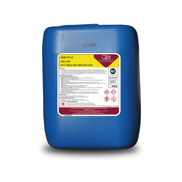 Sani SF-15 là chất khử trùng dạng lỏng, có tính axit dựa trên Hydrogen Peroxide & Peracetic Acid. Nó có hiệu quả tiêu diệt vi khuẩn, nấm men và nấm ngay cả ở nhiệt độ thấp.