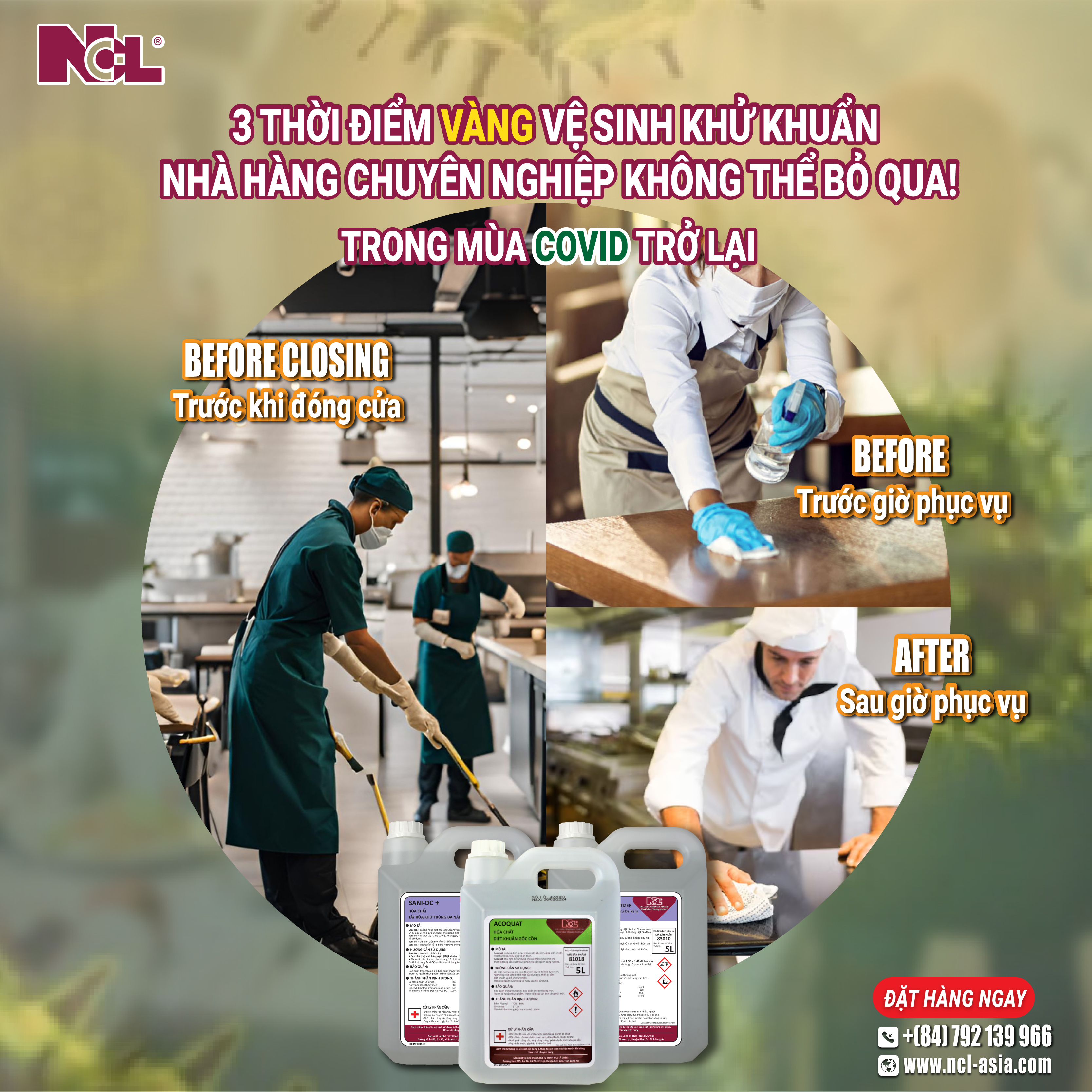 #hóachấtvệsinhnhàhàng #vệsinhF&B #khửkhuẩntạinhàmáy #vệsinhbềmặtthựcphẩm #phòngdịchF&B #NCLAsia #khửkhuẩnsâu #dịchvụcungứnghóachất