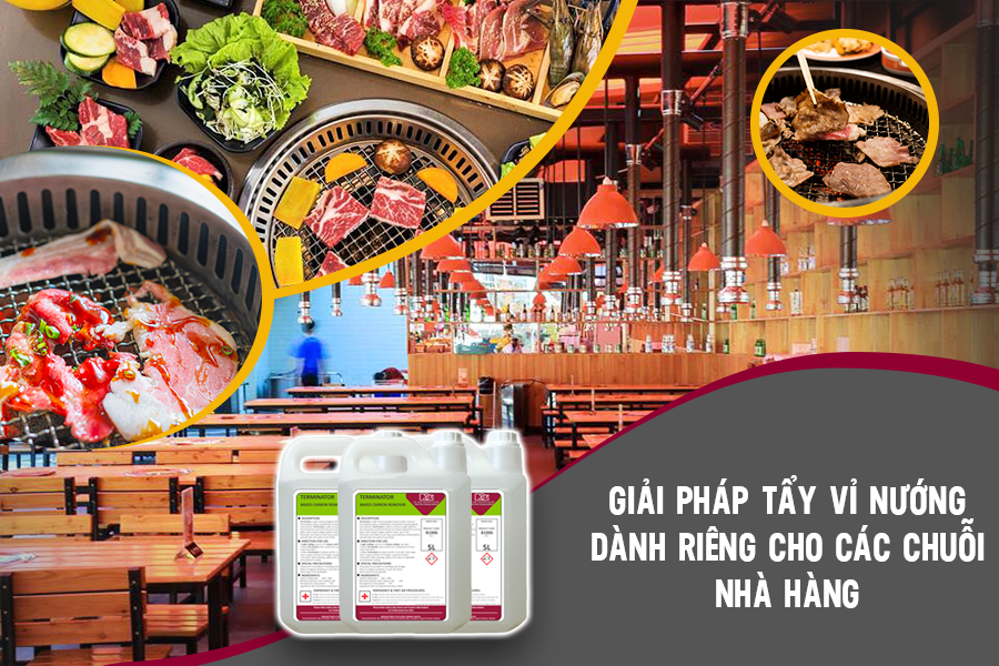 Nắm bắt được nhu cầu đó của thị trường, NCL (Á Châu) đã cung cấp sản phẩm tẩy vết bám Terminator dành riêng cho việc tẩy vỉ nướng, đánh bay những vết bẩn cáu cặn, cứng đầu đặc biệt là các vết carbon cháy và được các chuỗi nhà hàng nướng tin dùng.