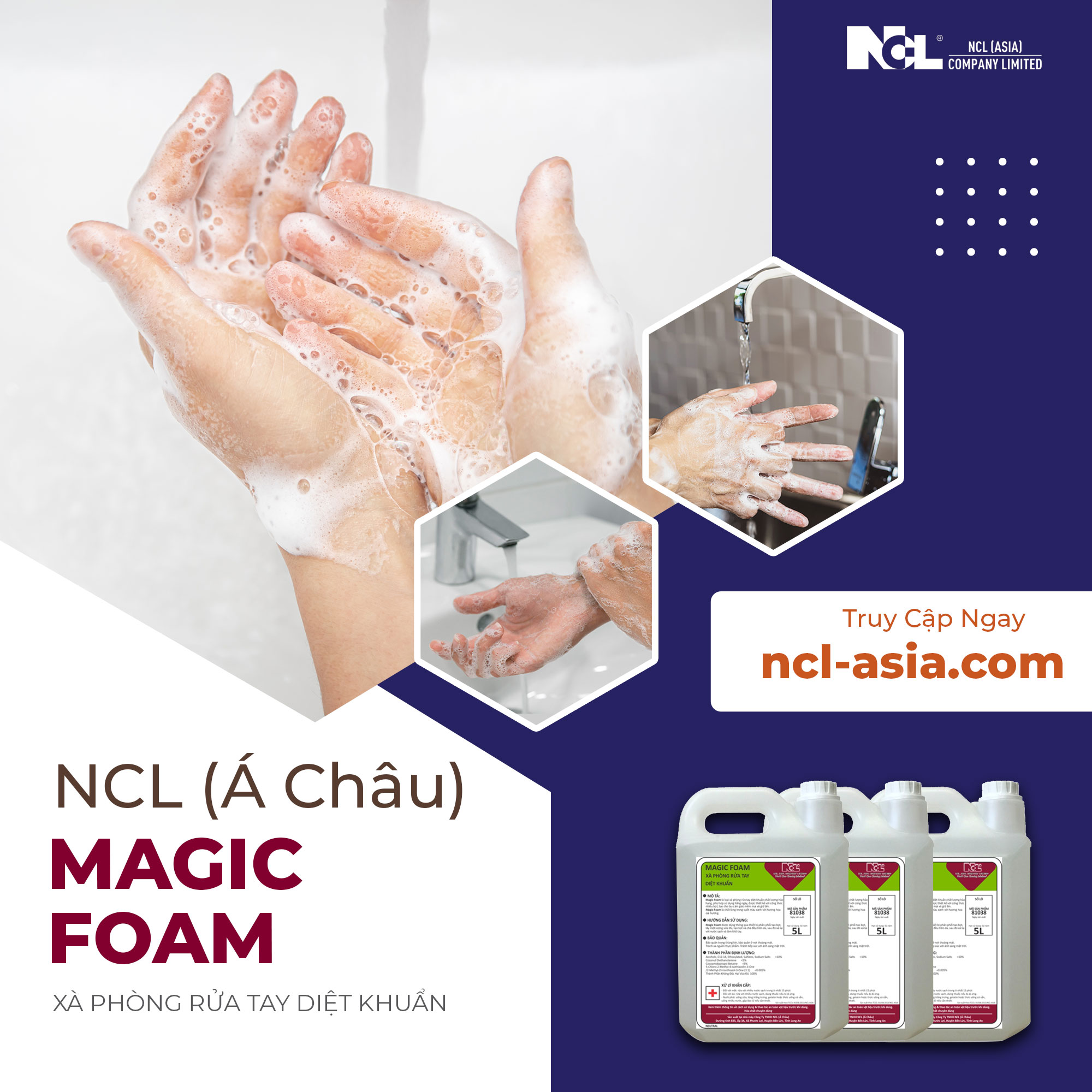 Magic Foam của NCL Á Châu là một sản phẩm với sự kết hợp hoàn hảo giữa tính năng diệt khuẩn hiệu quả và an toàn cho da tay.