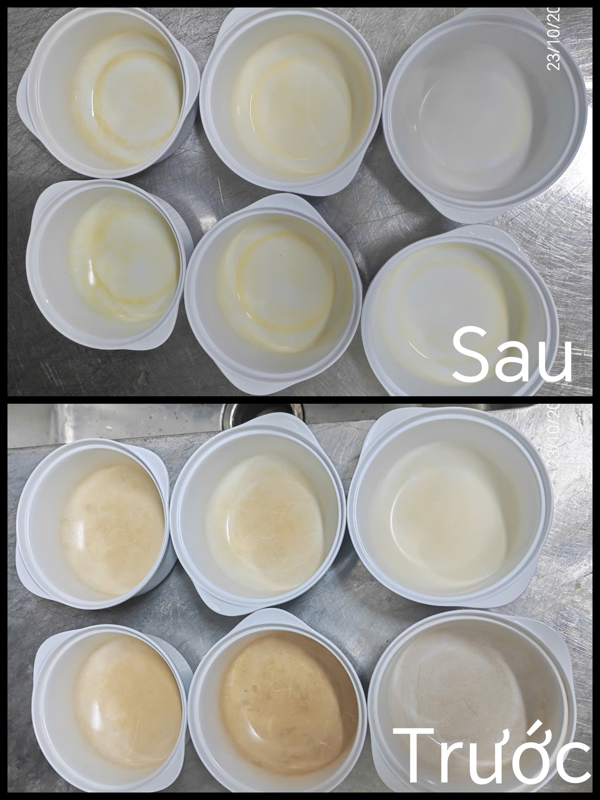 Trong môi trường chế biến thực phẩm, đặc biệt là khu vực rửa chén, ly và dụng cụ ăn uống, các vết ố vàng, cặn bám dầu mỡ, protein và canxi thường tích tụ lâu ngày, gây mất vệ sinh và ảnh hưởng đến thẩm mỹ.
