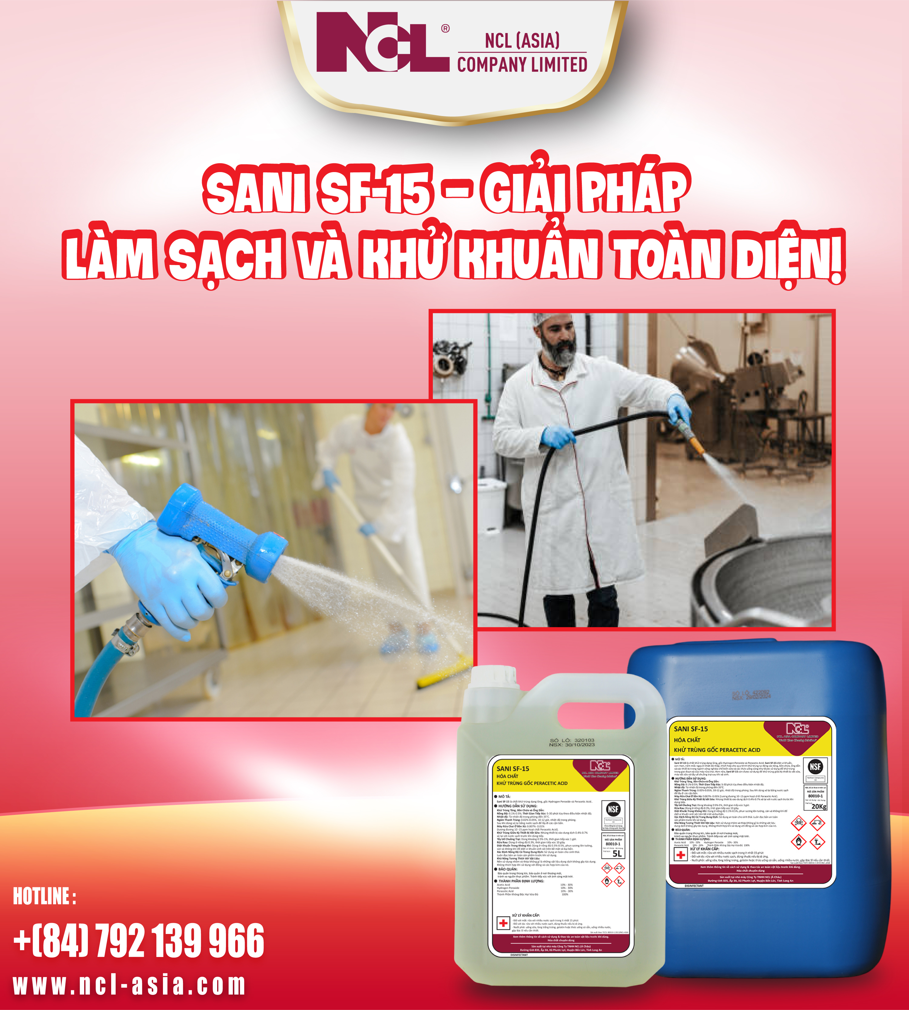 #SANI_SF15 #HóaChấtVệSinh #LàmSạchDiệtKhuẩn #GiảiPhápVệSinhChuyênNghiệp #NCLAsia