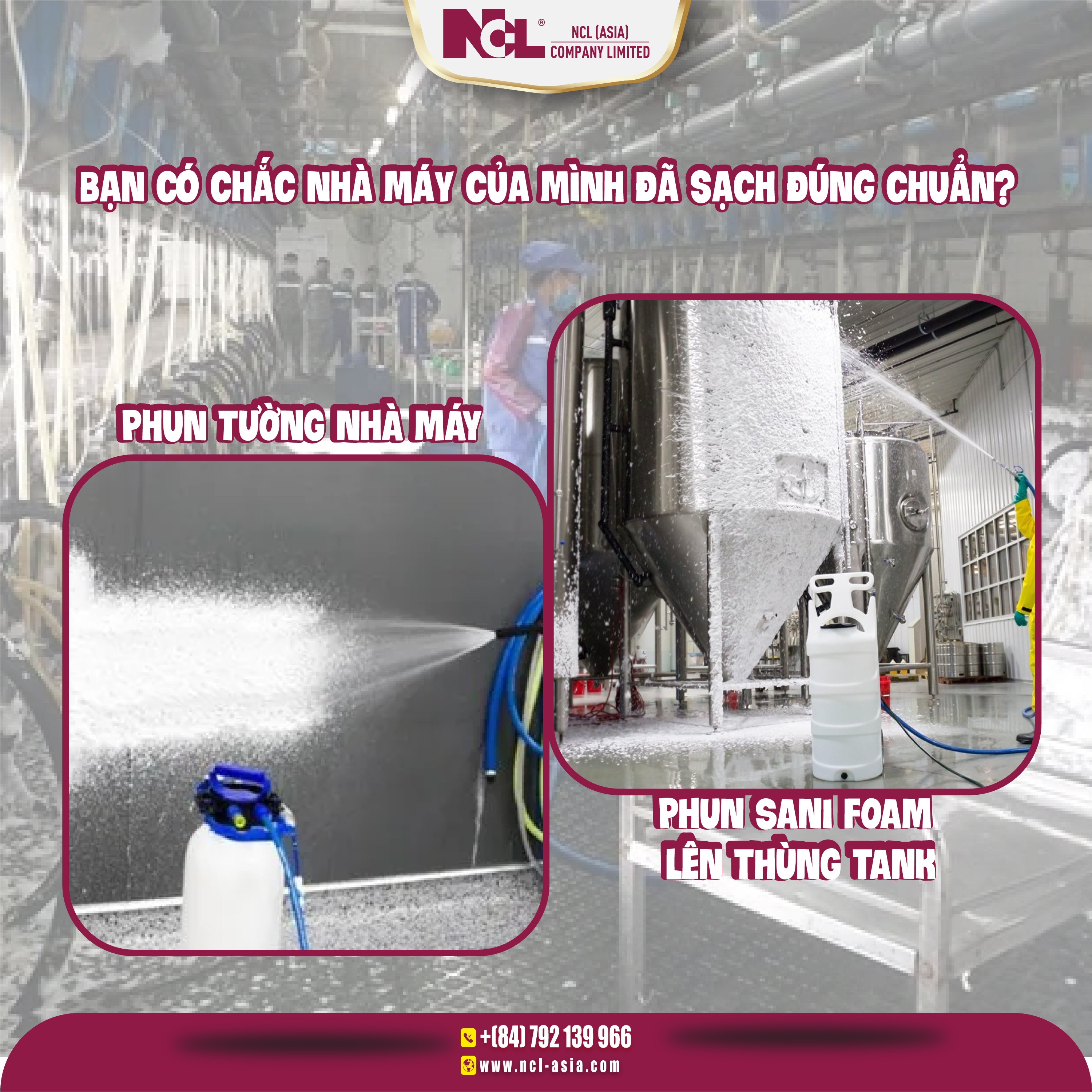 SANIFOAM – GIẢI PHÁP LÀM SẠCH & KHỬ TRÙNG HIỆU QUẢ CHO NHÀ MÁY THỰC PHẨM VÀ SẢN XUẤT