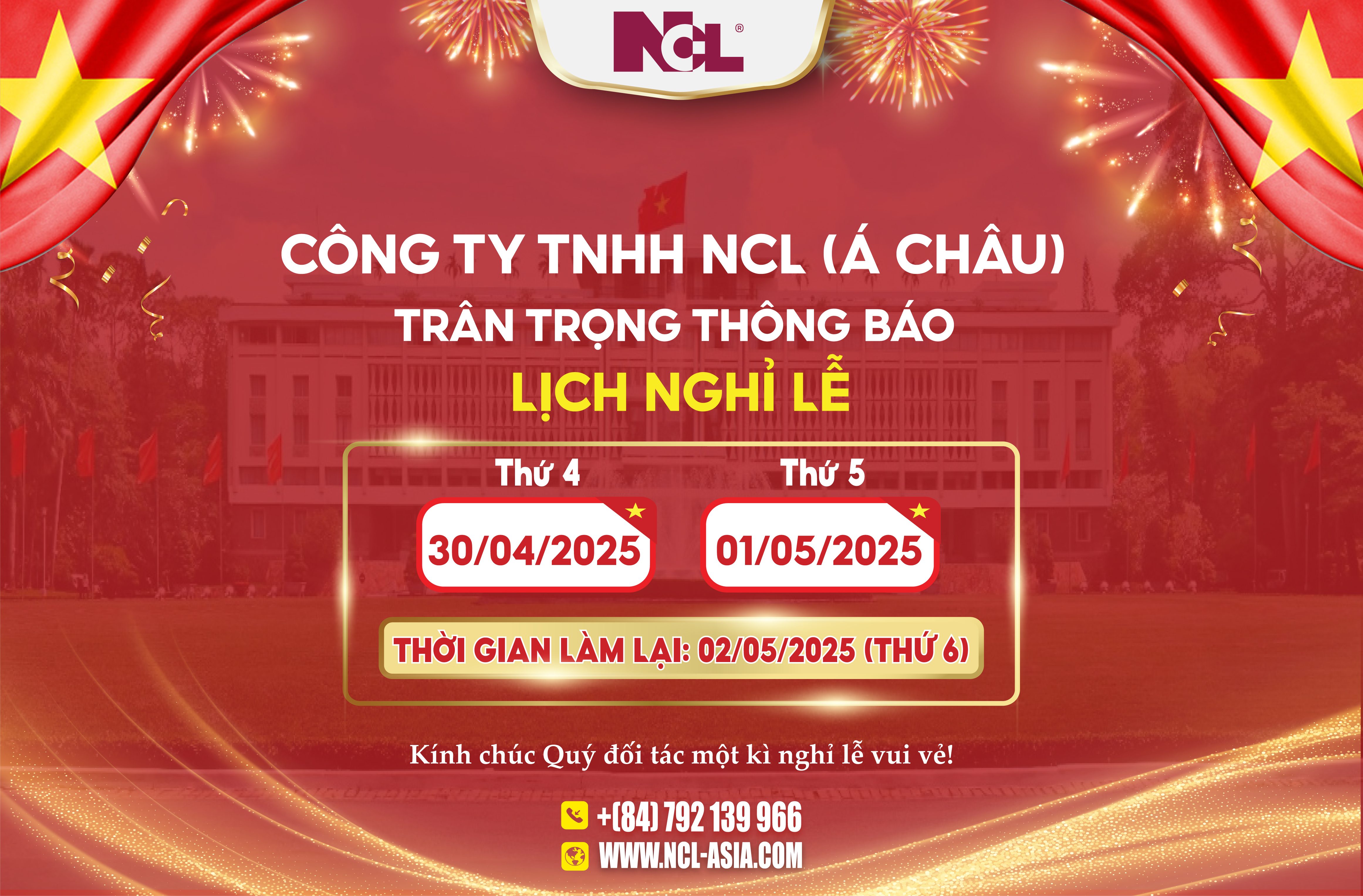 Công ty TNHH NCL (Á CHÂU) kính chúc Quý khách hàng, Quý đối tác có một kỳ nghỉ lễ vui vẻ, ý nghĩa và an toàn bên gia đình, người thân.